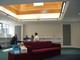 The new design gives a strong identity to the main entrance and provides a welcoming space for visitors. The main reception is housed under an open-vaulted pyramid roof, clad in natural slate and finished internally in Douglas Fir acoustic slats. Rooflights provide generous levels of natural light and ventilation deep into this central area.
