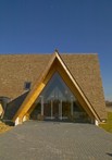 Thames Chase is one of 12 community forests in England. It comprises over 40 square miles of land on the edge of London which is being transformed into woodlands, meadows and marshes. The design of the new Visitor Centre demonstrates a modern innovative use of timber, yet respecting and complementing the original mediaeval barns to which it is connected. The barns have been restored as part of the project. The new building comprises an ‘A-frame’ structure using glue laminated beams, clad in cedar shingles. The ‘A-frame’ was chosen for its efficient structural form, quick assembly on site and suitable backcloth for the interpretive displays that focus on wood and the community forest.