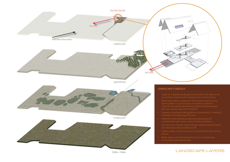 For this competition we sought to create a prominent, landmark building which visitors would instantly recognise in this wetland environment. Its shape, form and materials give it a warm and friendly character to make the building more enjoyable and encourage repeat visits.